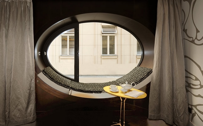 Κάθε ένα από τα οβάλ παράθυρα περιλαμβάνει ένα κρεβάτι εμπνευσμένο από τα έπιπλα Biedermeier, που έχει ενσωματωθεί στο περβάζι του παραθύρου. Είναι το ιδανικό μέρος για να θαυμάσετε τη θέα στην πόλη.