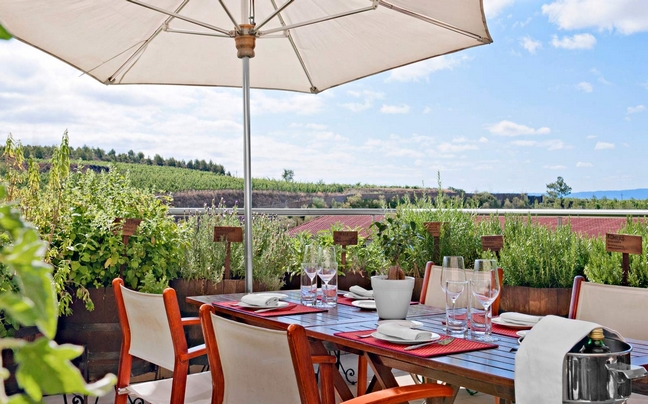 Η θέα του ξενοδοχείου, που βρίσκεταο στην καρδιά του χωριού Elciego είναι μαγευτική, καθώς βλέπει σε μια τεράστια έκταση αμπελώνων της περιοχής.