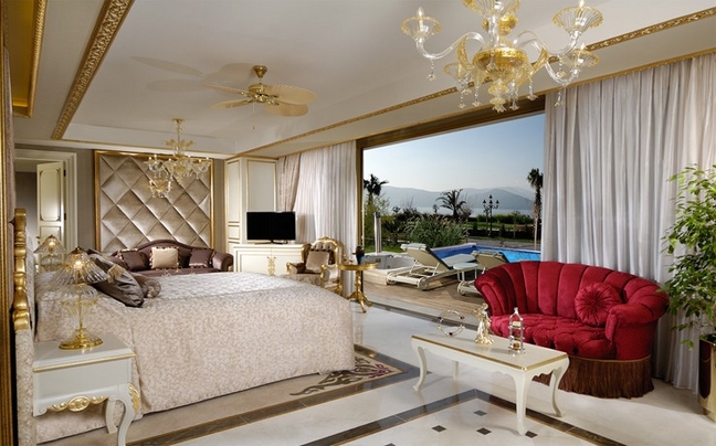 Οι 110 ξεχωριστές σουίτες και βίλες διακοσμημένες με εντυπωσιακά έπιπλα, υφάσματα και επίχρυσα αντικείμενα εξασφαλίζουν μια ποιοτική διαμονή και φυσικά μοναδική θέα στη θάλασσα από τις πολυτελείς βεράντες.