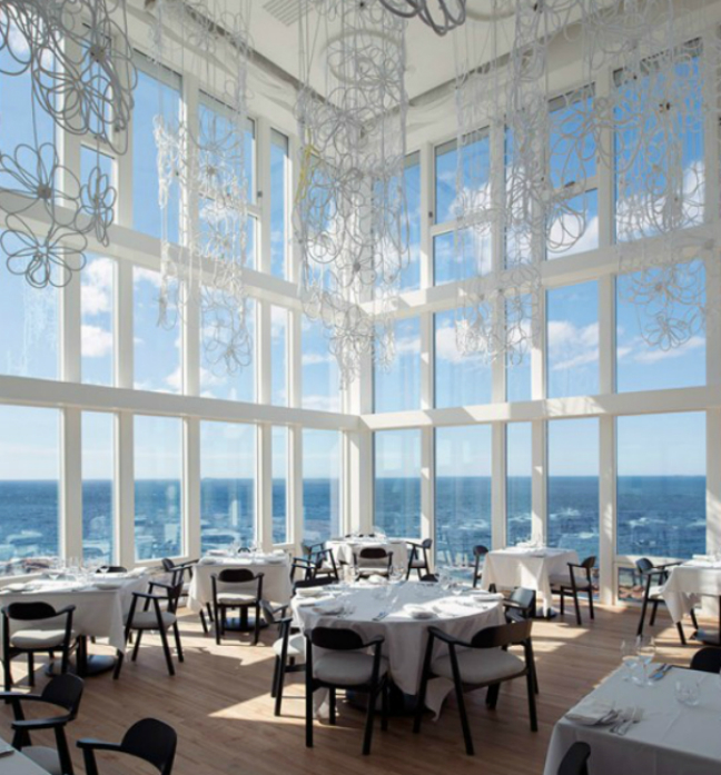 Δυο γυάλινοι τοίχοι, που θυμίζουν την πλώρη πλοίου, περικλείουν τον χώρο τους εστιατορίου, δίνοντας την αίσθηση στους επισκέπτες ότι βρίσκονται καταμεσής του Βόρειου Ατλαντικού.