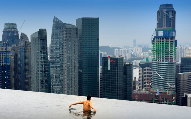 Οι τρεις πύργοι του Marina Bay Sands, που συνδέονται στο τελευταίο πάτωμα, κόστισαν 8 δισεκατομμύρια δολάρια.
