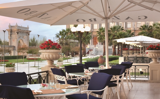 Κάθε ένα από τα συνολικά έξι εστιατόρια του παλατιού, έχουν πανοραμική θέα στην τούρκικη μητρόπολη και τα στενά του Βοσπόρου από τις βεράντες τους.