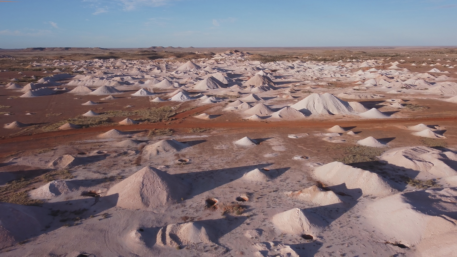 Στον μακρύ δρόμο προς την κεντρική Αυστραλία, 848 χιλιόμετρα βόρεια από τις παράκτιες πεδιάδες της Αδελαΐδας, υπάρχουν διάσπαρτες αινιγματικές αμμώδεις πυραμίδες, σαν μυρμηγκοφωλιές. Γύρω τους, το τοπίο είναι εντελώς έρημο – μια ατελείωτη έκταση σκόνης με κάποιους λίγους θάμνους. Ανά κάποια μέτρα μπορεί κανείς να παρατηρήσει ορισμένους λευκούς σωλήνες που βγαίνουν από το έδαφος.