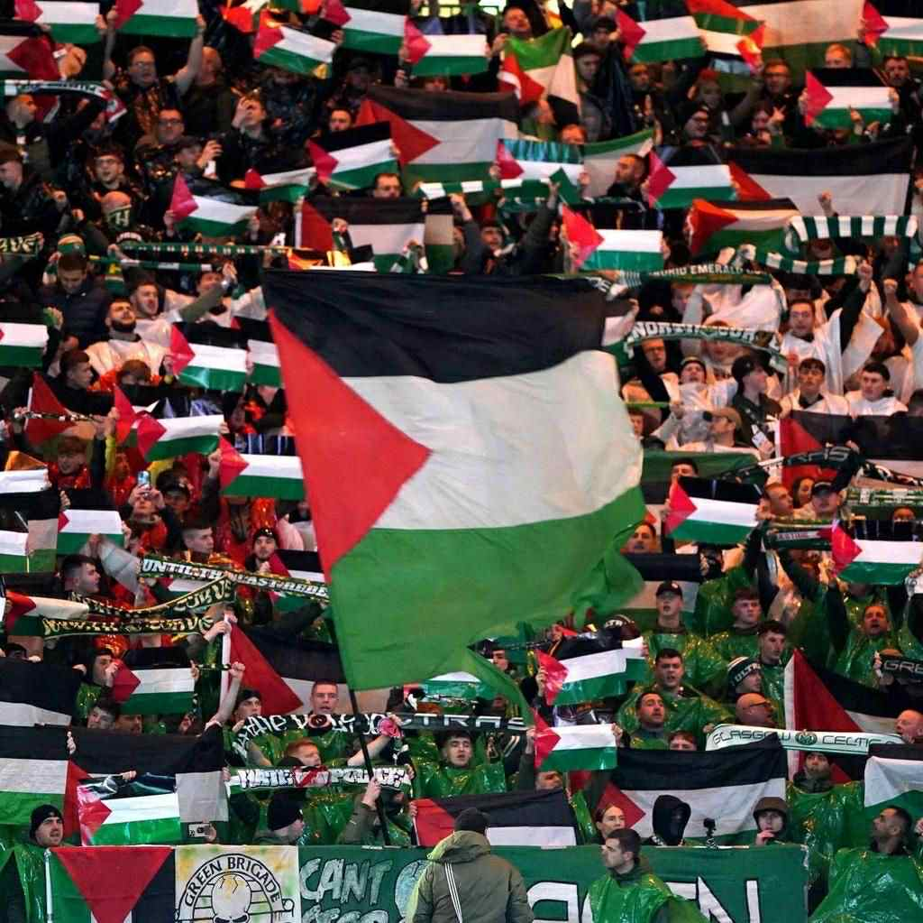 Στις 25 Οκτωβρίου 2023, εν μέσω κλιμάκωσης της σύγκρουσης στη Γάζα, το Celtic Park μετατράπηκε σε μια θάλασσα παλαιστινιακών σημαιών. Χιλιάδες φίλοι της Celtic ύψωσαν εκατοντάδες σημαίες της Παλαιστίνης πριν από αγώνα του Champions League, παρά την έκκληση της διοίκησης να μην υπάρξουν πολιτικά σύμβολα λόγω πιθανών κυρώσεων. Η πράξη αυτή προβλήθηκε διεθνώς και έγινε αντιληπτή ως συνέχεια της μακρόχρονης παράδοσης των οπαδών της Celtic να στηρίζουν τον παλαιστινιακό αγώνα.