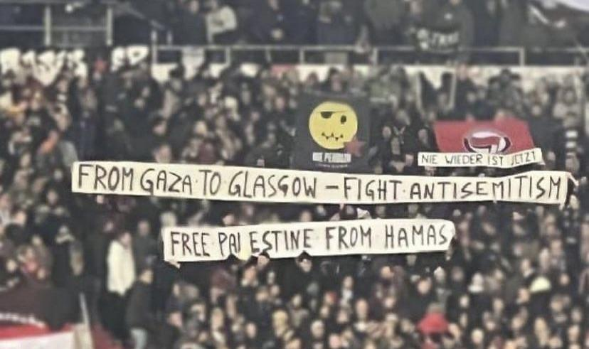 «From Gaza to Glasgow – Fight Antisemitism! Free Palestine from Hamas!», μια εμφατική δημόσια αιχμή μερίδας των οπαδών της St. Pauli προς τους φίλους της ομάδας από τη Γλασκώβη. Η ενέργεια αυτή σηματοδότησε την κλιμάκωση της έντασης μεταξύ του «ενεργού» οπαδικού πυρήνα που εδρεύει στο Αμβούργο και των υποστηρικτών ειδικά εκτός Γερμανίας, με αντικείμενο τη στάση απέναντι στο Παλαιστινιακό ζήτημα.