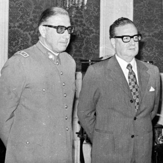 Σπάνια κοινή φωτογραφία του στρατηγού και μετέπειτα δικτάτορα Πινοσέτ (αριστερά) με τον πρόεδρο της Χιλής, Αλιέντε (δεξιά)