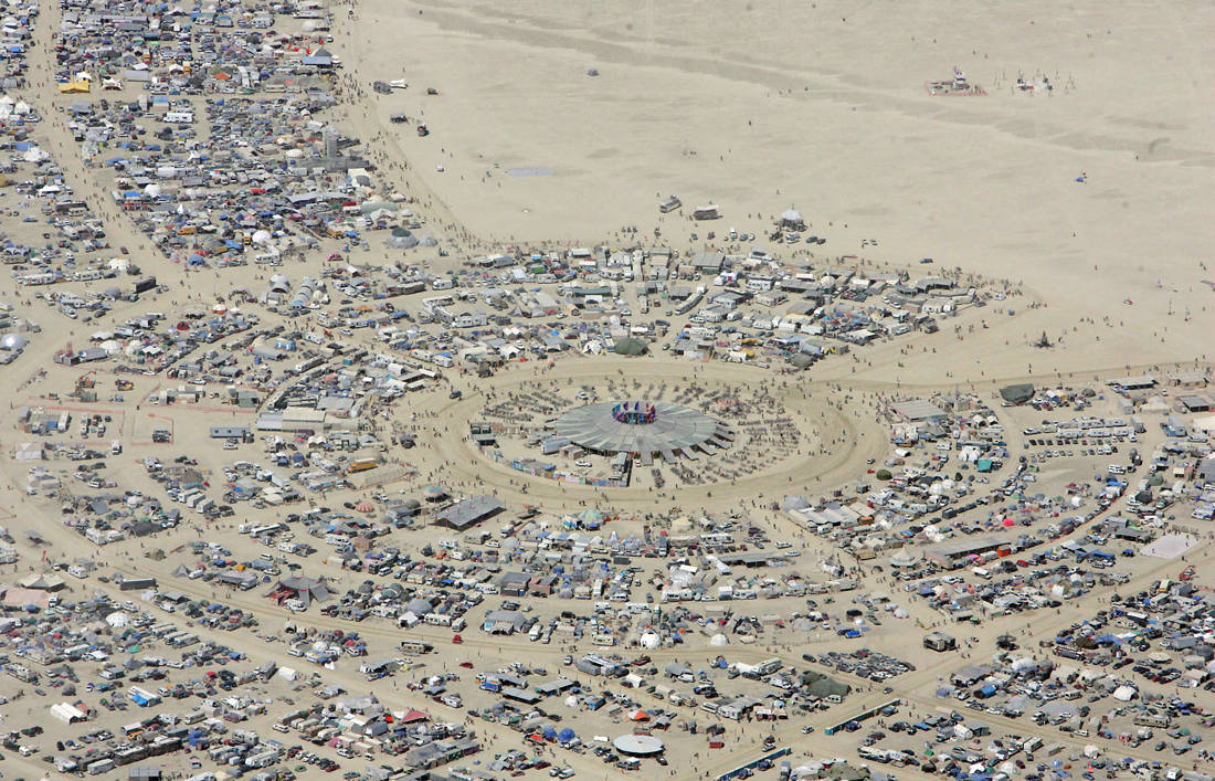 Σήμερα τα πράγματα έχουν αποκτήσει και μια πολυτελή νότα, καθώς η ελίτ της υφηλίου κατεβαίνει εδώ με τα ιδιωτικά της τζετ και τα ελικόπτερα, που προσγειώνονται στο αυτοσχέδιο αεροδρόμιο (Black Rock City Airport) που στήνουν οι εθελοντές καμιά βδομάδα πριν το φεστιβάλ πάνω σε έναν άνυδρο δρόμο. Ακόμα και πολυτελείς σκηνές ή τροχόσπιτα θα βρεις τα τελευταία χρόνια, που στήνονται στα απομονωμένα «προάστια» της φεστιβαλικής πολιτείας και κοστίζουν αρκετές χιλιάδες δολάρια τη βραδιά.