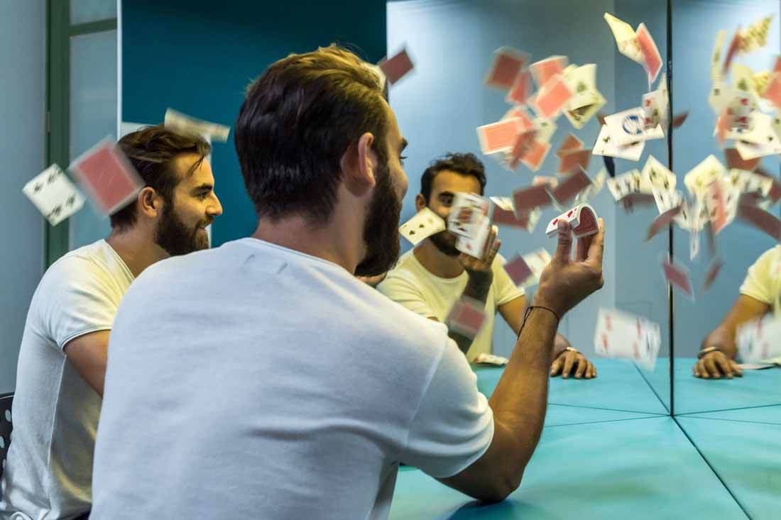 Σκεφτείτε να μπαίνετε σε ένα χώρο και δύο μάτια να σας ακολουθούν ενώ εσείς κινείστε. Και πριν καλά τα συνηθίσετε καρφωμένα πάνω σας, πώς θα σας φαινόταν να πέφτατε πάνω σε πολλούς Άλμπερτ Αινστάιν που δεν λένε να σας σταματήσουν να σας κοιτάνε; Αλήθεια είχατε φανταστεί ποτέ να δείτε το κεφάλι κάποιου κομμένο και σερβιρισμένο; Πότε ήταν η τελευταία φορά που το κεφάλι σας στριφογύριζε και χάνατε τη γη κάτω από τα πόδια σας; Καλώς ήλθατε στο πρώτο Μουσείο Ψευδαισθήσεων (Museum of Illusions) στην Ελλάδα. Ένα άκρως παραπλανητικό και απόλυτα διασκεδαστικό παιχνίδι ξεκινά… Μπαίνοντας από την είσοδο και αφήνοντας πίσω σου δυο μάτια κολλημένα στον τοίχο που δεν έχουν καμία διάθεση να σε αφήσουν στην ησυχία σου, φτάνεις στο τραπέζι κλωνοποίησης στο οποίο πάνω υπάρχει μία τράπουλα. Εκεί ξαφνικά βρίσκεσαι περικυκλωμένος από πέντε παίκτες – κλώνους σου με τους οποίους όση ώρα κι αν αποφασίσεις να παίξεις ένα είναι σίγουρο, έχεις την νίκη στο τσεπάκι σου!