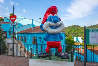 Οι χαρακτηριστικές φιγούρες της Στρουμφίτας, του Μπαρμπα Στρουμφ αλλά και του Δρακουμέλ ζωγραφίστηκαν σε διάφορους τοίχους, ενώ στους δρόμους του συναντούσε κανείς και κάποιες 3D φιγούρες τους.