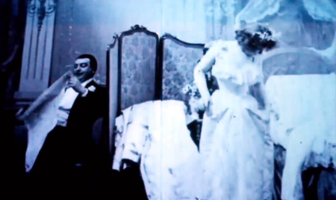Η ταινία ήταν μάλιστα μια από τις πρώτες που γυρίστηκαν σε στούντιο, καθώς ο ανοιχτός χώρος ήταν εξόχως απαγορευτικός για τέτοιες μασκαράτες. Τι παρακολουθούμε; Ένα νιόπαντρο ζευγάρι στη νυφική παστάδα. Εκείνος αρχίζει τις χαριτωμενιές, εκείνη ανταπαντά με νάζια και του ζητά τελικά να απομακρυνθεί για να ξεντυθεί, αφαιρώντας ένα-ένα τα πάμπολλα στρώματα των ρούχων της.
