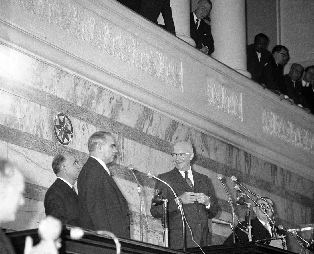 Μέσα στο εύθραυστο αυτό πλαίσιο για τη διεθνή ειρήνη και νομιμότητα, ο πρωθυπουργός της Ελληνικής Δημοκρατίας, Κωνσταντίνος Καραμανλής, συναντιέται στην Αμερική με τον πρόεδρο Κένεντι. Στις δηλώσεις του σπεύδει να υπογραμμίσει το «ειδικόν δικαίωμα» που έχουν οι ΗΠΑ «να ενδιαφέρονται διά την ανεξαρτησίαν και την ελευθερίαν του δυτικού ημισφαιρίου».