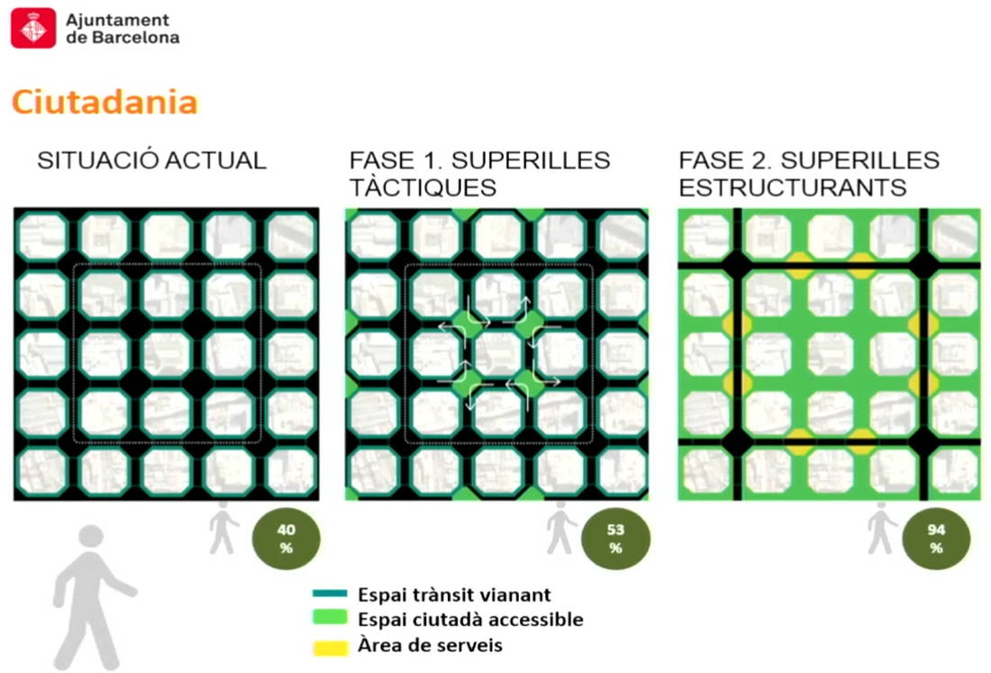 «Τα οχήματα καταλαμβάνουν το 60% των δημόσιων χώρων στην πόλη» εξηγούσε η αντιδήμαρχος Αστικής Ανάπτυξης Janet Sanz σε πρόσφατη συνέντευξή της στο BBC. «Μόλις γίνει αναδιανομή αυτού του χώρου και η κατάσταση οδηγηθεί σε νέα ισορροπία, υποστηρίζονται ομάδες πολιτών που μέχρι τότε δεν είχαν καμία πρόσβαση στους χώρους αυτούς».