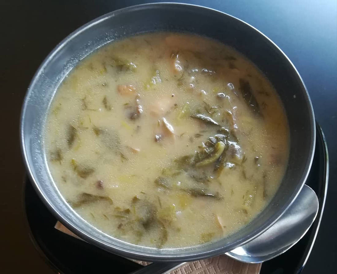 Πρόκειται στην ουσία για μία παραλλαγή της παραδοσιακής μαγειρίτσας που μάλιστα θυμίζει πολύ τη γεύση που κυριαρχεί στα πασχαλιάτικα οικογενειακά τραπέζια. Αντί για κρέας όμως έχει μανιτάρια. Περιέχει πράσο, μαρούλι, άνηθο, κρεμμυδάκι και έξτρα παρθένο ελαιόλαδο.