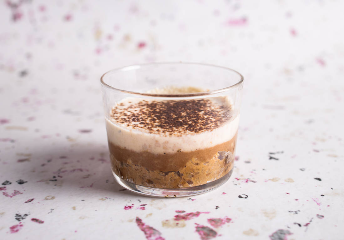 Τιραμισού χωρίς τύψεις καθώς δεν έχει ίχνος ζάχαρης. Μια ωμοφαγική συνταγή με ξηρούς καρπούς, λάδι καρύδας, espresso και σιρόπι σφένδαμου.