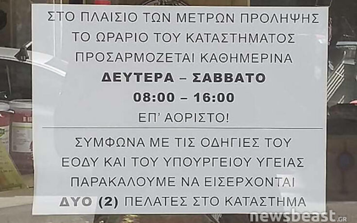 Επίσης υπάρχει ειδική οδηγία να μη συνωστίζεται ο κόσμος στην αναμονή για εξυπηρέτηση. Έτσι και εμείς έχουμε αναρτήσει στην είσοδο του μαγαζιού σχετική οδηγία, για να εισέρχονται αυστηρά έως δύο πελάτες στον χώρο. Βέβαια αυτό είναι κάτι που ο κόσμος το σέβεται πλήρως και μπορώ να πω ότι το εφάρμοζε και χωρίς την παρέμβασή μας.