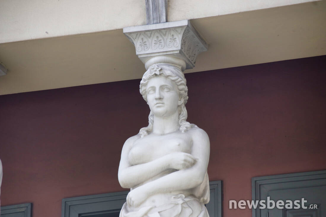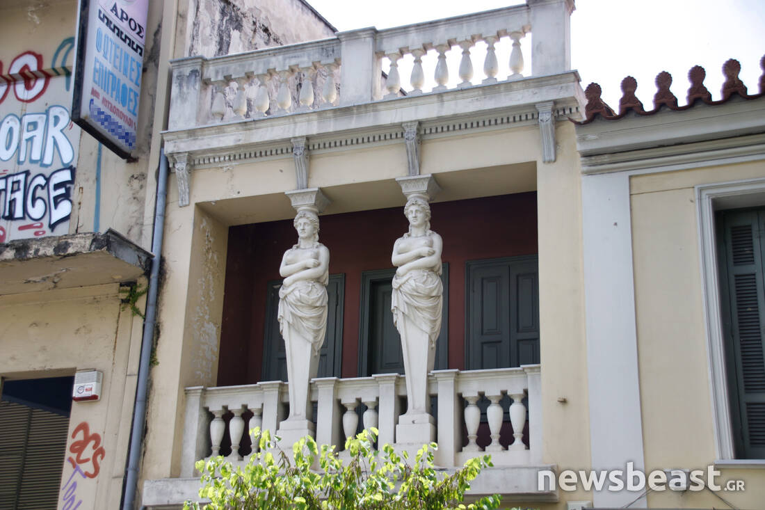 Αποκλείεται να έχετε περάσει από το συγκεκριμένο σημείο και να μην το έχετε προσέξει. Στην οδό Αγίων Ασωμάτων 45, στου Ψυρρή, βρίσκεται ένα αναπαλαιωμένο νεοκλασικό κτίριο που έχει κάτι το περίεργο. Στο μπαλκόνι του πρώτου ορόφου φιγουράρουν καμαρωτές δύο μεγάλες ολόλευκες Καρυάτιδες με τα χέρια σχεδόν σταυρωμένα που βλέποντάς τες, θαρρείς πως το ‘σκασαν από κάποιον αρχαιοελληνικό ναό. Εντυπωσιασμένος ο Γάλλος φωτογράφος Ανρί Καρτιέ Μπρεσόν, ένας από τους σημαντικότερους του 20ού αιώνα, τις αποτύπωσε σε ασπρόμαυρο φιλμ το 1953, ενώ ο μεγάλος ζωγράφος Γιάννης Τσαρούχης δημιούργησε δύο πίνακες με κεντρικό θέμα το συγκεκριμένο οίκημα. Εντάχθηκε παράλληλα σε μυθιστορήματα συγγραφέων, έγινε φόντο σε θεατρικά σκηνικά και βέβαια καμβάς για αντικείμενο δεκάδων αναλύσεων για το λόγο που τοποθετήθηκαν εκεί.