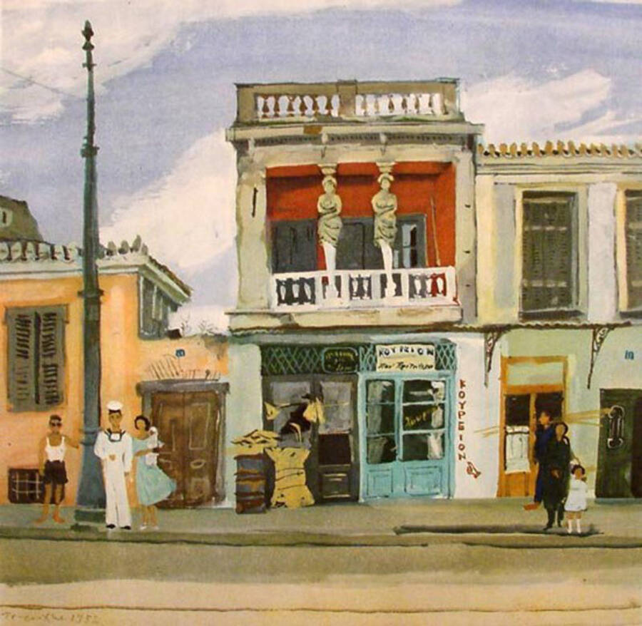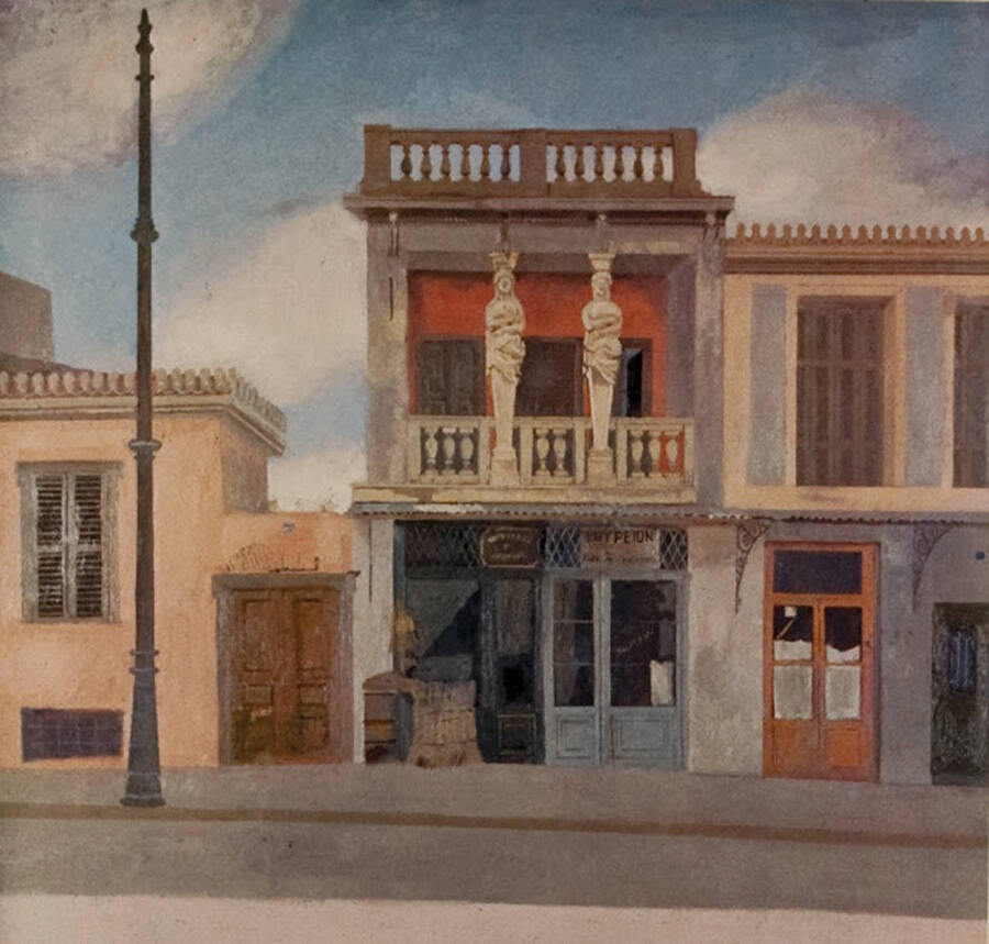 Ο πίνακας με τίτλο «Το σπίτι με τις Καρυάτιδες» που φιλοτέχνησε ο Γιάννης Τσαρούχης το 1952