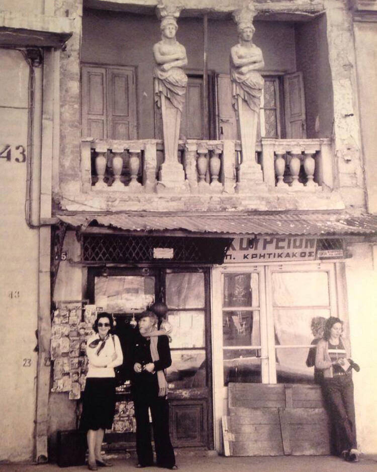 Ο Γιάννης Τσαρούχης μπροστά από το σπίτι με τις Καρυάτιδες