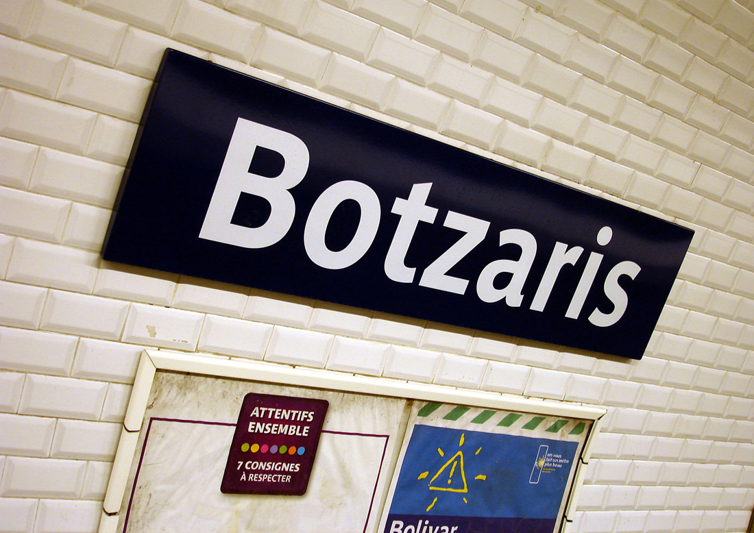 Η οδωνυμική ταμπέλα γράφει συγκεκριμένα «Rue Botzaris (1790- 1823) Heros de la guerre d’ Independence Grecoue» («Οδός Μπότσαρη (1790 1823) Ήρωας του πολέμου της Ανεξαρτησίας της Ελλάδας»).