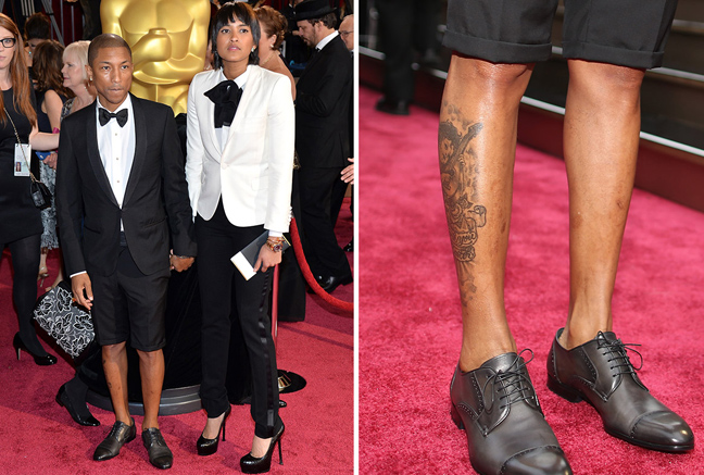 Μπορεί οι γυναικείες παρουσίες να κλέβουν τα βλέμματα στο Κόκκινο Χαλί, όμως και οι άντρες έχουν τις στιγμές τους. Υπάρχουν αυτοί που θα καταλήξουν στην ασφαλή επιλογή ενός κουστουμιού και αυτοί που θα τη θεωρήσουν βαρετή και συνηθισμένη. Στην περίπτωση του τραγουδιστή Pharrell Williams οι ειδικοί σηκώνουν τα χέρια ψηλά. Στα Όσκαρ του 2014 τα μάτια γούρλωσαν όταν ο 42χρονος μικροκαμωμένος τραγουδιστής της r’n’b εμφανίστηκε με σακάκι και βερμούδα, που άφηνε εκτεθειμένο το τατουάζ του και την άτριχη γάμπα του. Απαραίτητο αξεσουάρ το σμόκιν και το σκαρπίνι (χωρίς κάλτσα φυσικά!), μαζί με το πολλά βαρύ ύφος. Έτσι και ο Pharrell πήρε επάξια μια θέση στο πάνθεον των κακοντυμένων.