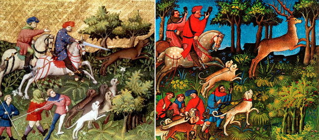 Οι αριστοκρατικές τάξεις του Μεσαίωνα απέδιδαν μεγάλη βαρύτητα στο κυνήγι και το κύρος που εκπορευόταν από σκοτωμένα άγρια θηρία, όπως αρκούδες, αγριόχοιροι και ελάφια. Κι αυτό γιατί το κυνήγι πρόσφερε τη χρυσή ευκαιρία για να φανούν οι ικανότητές τους στη σκοποβολή και την ιππασία, μεγάλες δουλειές για τους ευγενείς της εποχής, καθώς δεν ήταν και πολλά τα πράγματα που μπορούσαν να διακριθούν. Το κυνήγι όμως μόνο εύκολο δεν ήταν καθώς οι κίνδυνοι που παραμόνευαν πολλοί και διάφοροι, τόσο από τα άγρια ζώα όσο και από τα ατυχήματα που ελλόχευαν από την ίδια την ιππασία και τα φίλια πυρά. Το κυνήγι ήταν βέβαια ταξικό προνόμιο της αριστοκρατίας, καθώς όταν ο λαουτζίκος προσπαθούσε να λαθροκυνηγήσει η τιμωρία και βάρβαρη ήταν και παραδειγματική: συνήθως απαγχονισμός, αν και δεν ήταν σπάνιος ο ευνουχισμός ή ακόμα και η τύφλωση του λαθροθήρα. Υπήρχε όμως και άλλη τιμωρία, σαφώς πιο διαβολική στη σύλληψή της: ο εξαθλιωμένος χωρικός που πιάστηκε να κυνηγά ραβόταν κυριολεκτικά πάνω σε δέρμα ελαφιού και αφηνόταν κατόπιν ελεύθερος, όπως και τα άγρια κυνηγόσκυλα φυσικά, με τη φρικιαστική συνέχεια να είναι εύκολη στη φαντασία…