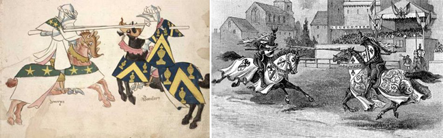 Μεσαιωνική εξέλιξη των μονομαχιών στην αρένα, οι ιππομαχίες με τις λόγχες παρέμεναν εξίσου επικίνδυνες με τον ρωμαϊκό προκάτοχό τους: δύο ιππότες συγκρούονταν κατά μέτωπο προσπαθώντας να ρίξει ο ένας τον άλλο από τη σέλα, με τους σοβαρούς τραυματισμούς και τον θάνατο να είναι στην ημερήσια ατζέντα του δημοφιλέστατου σπορ που ξέρουμε όλοι, καθώς είναι συνυφασμένο με την ιπποτική Ευρώπη του Μεσαίωνα. Και βέβαια η μάχη συνεχιζόταν και εκτός αλόγων, με τα σπαθιά και τα τσεκούρια να παίρνουν πια τον πρώτο λόγο και να επιφέρουν δραματικές συνέπειες στους διαγωνιζόμενους. Το ιδιαίτερα βίαιο και αιματοβαμμένο σπορ κατέληγε συχνά σε θανάτους: ορόσημο στέκει εδώ ο Ερρίκος Β’ της Γαλλίας, ο οποίος σκοτώθηκε στο σπορ όταν το κοντάρι του αντιπάλου του καρφώθηκε στο βασιλικό κεφάλι. Η ύστατη αυτή δοκιμασία των ιπποτικών δεξιοτήτων του αναβάτη δικαιολογιόταν τέλεια ως εκπαίδευση των ιπποτών σε πραγματικές συνθήκες μάχης, την ίδια ώρα που το κοινό την έβρισκε ακαταμάχητη, με τους αυστηρούς κανόνες και τις εξαντλητικές διαδικασίες να δίνουν το κατιτίς παραπάνω στη σώμα με σώμα κονταρομαχία. Πολλοί ιππότες πλούτισαν από το συγκεκριμένο άθλημα, καθώς η νίκη περιλάμβανε την απόκτηση της πανοπλίας και του αλόγου του ηττημένου, τα οποία όφειλε να αγοράσει εκ νέου ο χαμένος από τον θριαμβευτή. Και ήταν ακριβώς η εφεύρεση του μουσκέτου το 1520 που θα έκανε προοδευτικά το σπορ παρελθόν, αν και θα αναβίωνε το 1962 στις ΗΠΑ, όταν έγινε το επίσημο άθλημα του Μέριλαντ!