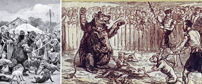 Το αιμοβόρικο μεσαιωνικό παιχνίδι έγινε τόσο δημοφιλές που σε κάθε πόλη και χωριό της Βρετανίας φιλοξενούταν ειδικός χώρος για το βάρβαρο δρώμενο, που θα μπορούσε κάλλιστα να ονομαστεί βασανιστήρια ζώων. Ο ταύρος χρησιμοποιήθηκε αρχικά για τις ανάγκες του φιλοθεάμονος κοινού, δίνοντας προοδευτικά τη θέση του στην αρκούδα, η οποία έγινε ανάρπαστη στους ελισαβετιανούς καιρούς, με την ίδια την Ελισάβετ Α’ να παίρνει συχνά μέρος στο αιμοδιψές παιχνίδι, το οποίο εφαρμοζόταν μάλιστα για να γίνει το κρέας του ζώου που μαλακό προς βρώση! Ο βασανισμός του ταύρου ήταν η καλύτερη λέει διαδικασία για το μαλάκωμα του κρέατος, κάτι που το έκανε ευκολότερο στην πέψη. Και βέβαια η τεχνική ήταν η ίδια είτε μιλούσαμε για ταύρο είτε για αρκούδα. Το κακόμοιρο ζώο δενόταν σε ένα παλούκι στο κέντρο μιας σκηνής και πιπέρι παραγέμιζε τη μύτη του, ώστε να εξοργιστεί επαρκώς. Και κατόπιν αναλάμβαναν δράση τα άγρια σκυλιά, με τα μπουλντόγκ (όπως υποδεικνύει εξάλλου και το όνομά τους) να είναι η Νο 1 ράτσα για το βάρβαρο αυτό θέαμα: τα σκυλιά επιτίθονταν στο καθηλωμένο ζώο στοχεύοντας στα πλέον ευαίσθητα σημεία του, καταλήγοντας έπειτα από μία ώρα ή και περισσότερο να το ρίξουν στο έδαφος σφαδάζοντας από τους πόνους. Κάποιες φορές βέβαια τραυματίζονταν βαριά και τα σκυλιά, κι όλα αυτά για να γίνει μαλακότερο το κρέας των ζώων αλλά και να ικανοποιηθούν τα αδηφάγα ένστικτα του πλήθους. Και θα έπρεπε η πολιτισμένη Αγγλία να περιμένει μέχρι το 1835 για να περάσει η Βουλή νόμο που απαγόρευε τον δημόσιο βασανισμό των ζώων…
