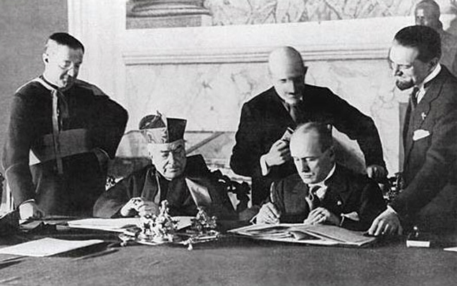 Το Βατικανό βρήκε στα χρόνια του Μουσολίνι τη δυνατότητα να λύσει οριστικά το ζήτημα του ξεχωριστού κράτους από την υπόλοιπη Ιταλία. Έτσι, μετά από σχεδόν έναν αιώνα διενέξεων με το ιταλικό κράτος, το Παπικό Κράτος κατάφερε να γίνει ανεξάρτητο και να αποκτήσει το ρεκόρ της μικρότερης χώρας ολόκληρου του κόσμου. Ωστόσο, για να συμβεί αυτό ήταν ο τότε Πάπας να έρθει σε συμφωνία με το φασιστικό καθεστώς που ο Μουσολίνι είχε επιβάλει το 1922. Τελικά, το 1929 ο Μουσολίνι και η Καθολική Εκκλησία υπέγραψαν τη Συνθήκη του Λατερανό με την οποία ιδρύθηκε το «Κράτος της πόλεως του Βατικανού». Παράλληλα, ο Μουσολίνι κατέβαλε 750.000.000 ιταλικές λίρες σε μετρητά και ένα δισ. ιταλικές λίρες σε δάνειο ως αποζημίωση για την κατάληψη των εδαφών του Ποντιφικού Κράτους. Η Εκκλησία χρησιμοποίησε τα χρήματα αυτά για να ξεκινήσει μια άκρως προσοδοφόρα οικονομική δραστηριότητα που σήμερα αποτιμάται στα περίπου 781 δισ. δολάρια!