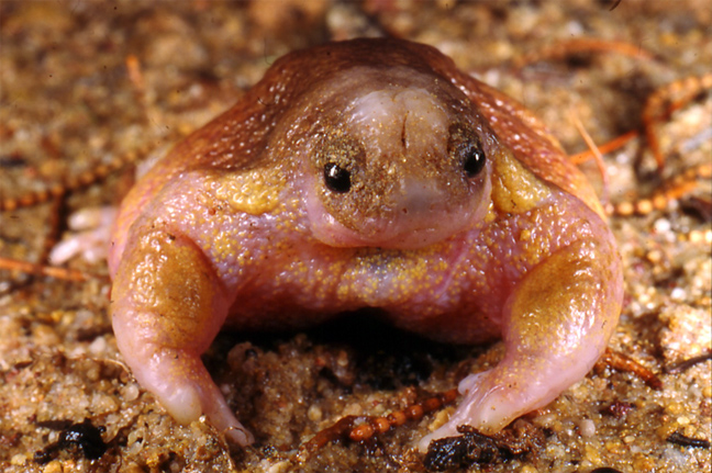 Μοναδικό είδος μιας ολόκληρης κατηγορίας, ο Myobatrachus gouldii της Αυστραλίας είναι ακόμα πιο προσαρμοστικός από τον Μοβ Βάτραχο. Κι αυτό γιατί έχει προσαρμοστεί πλήρως σε μια ζωή που παραμοιάζει με του τυφλοπόντικα: σκάβει υπόγεια τούνελ και ορμά σε φωλιές τερμιτών, τις οποίες και ανοίγει τρυπώντας τες με το κωμικά μικρό του κεφάλι, καταβροχθίζοντας στη συνέχεια ό,τι βρεθεί στον δρόμο του. Αντί όμως να γονιμοποιείται στο νερό, όπως όλα τα άλλα είδη του γένους, ο Βάτραχος-Χελώνα αναπαράγεται στα λαγούμια του και τα μικρά του προσπερνούν τη φάση του γυρίνου, παραμένοντας στα αυγά τους μέχρι να πάρουν το γνώριμο σχήμα της ενήλικης ζωής!
