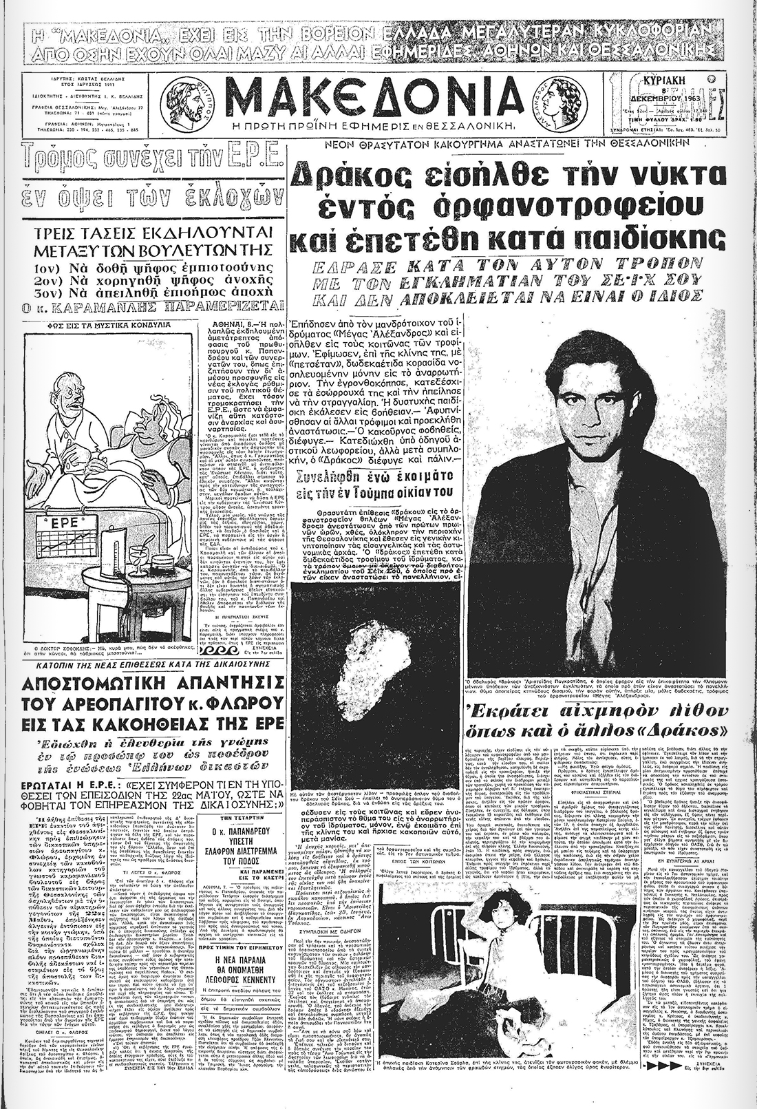 Μάλιστα στους δικηγόρους του ανέφερε πως ούτε η επίθεση στο ορφανοτροφείο δεν έγινε έτσι όπως την δημοσιοποίησε η Αστυνομία. Συγκεκριμένα είπε ότι: «στις 9 το βράδυ της μέρας που λένε πως ομολόγησα με βάλανε σε ένα δωμάτιο που έσταζε νερό. Μετά με πήγαν σε ένα άλλο δωμάτιο όπου μου έδωσαν να φάω ένα παξιμάδι μόνο. Εκεί με κράτησαν όρθιο ως τις 10 το πρωί. Ζητούσα νερό και δεν μου δίνανε. «Πες μας, μου έλεγαν, ότι είσαι ο δράκος και θα σου δώσουμε»…..Στο μεταξύ από τη δίψα κόντεψα να τρελαθώ. Ώσπου μια στιγμή δεν άντεξα. «Δώστε μου νερό, και θα σας πω ότι θέλετε» είπα». Τις έξι ημέρες που κράτησε η ανάκριση ήπιε κατά δήλωσή του μόνο δυο ποτήρια νερό και ένα ποτήρι τσάι και έφαγε τέσσερις φέτες ψωμί, τρία σάντουιτς, ένα πιάτο πατάτες και ένα πιάτο σπανακόρυζο. Θορυβημένες οι δικαστικές αρχές από όσα έλεγαν οι δικηγόροι στους δημοσιογράφους και δημοσιεύονταν στις εφημερίδες, απαγορεύουν από τις 18 Δεκεμβρίου και μετά, οποιαδήποτε περαιτέρω αναφορά ή φωτογραφία σχετικά με την υπόθεση αυτή σε όλες τις εφημερίδες της Θεσσαλονίκης και της Αθήνας.