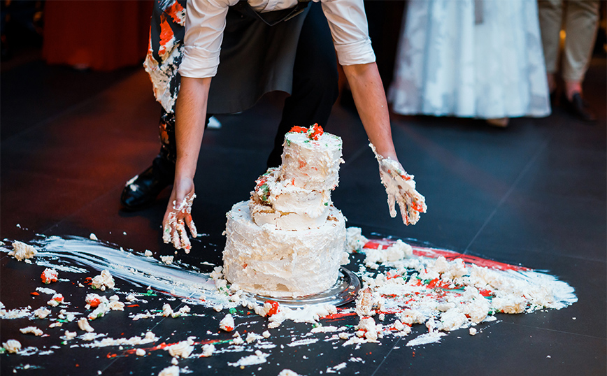 «Του είπα ότι αν μου έκανε ποτέ κάτι τέτοιο, θα τον άφηνα», έγραψε η νύφη σχετικά με τον σύζυγό της. «Άρχισε να γελάει, αλλά εγώ το εννοούσα». Η νύφη έγραψε ότι αισθάνθηκε ότι η ημέρα του γάμου τους είχε πάει τέλεια, αλλά καταστράφηκε όταν ο σύζυγός της έκοψε «ένα τεράστιο κομμάτι» της γαμήλιας τούρτας και το έριξε στο πρόσωπό της. Τότε, έφυγε αμέσως από τον χώρο, παρά τις προσπάθειες του συζύγου της και της οικογένειάς της να την πείσουν να μείνει.