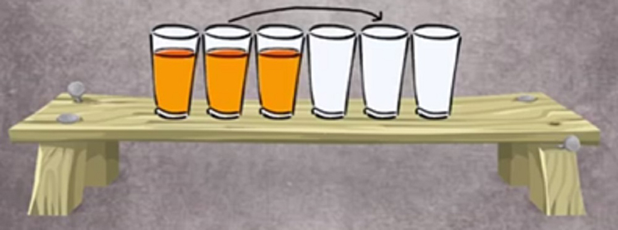Ο γρίφος έχει ως εξής: Έχουμε συνολικά έξι ποτήρια στη σειρά πάνω σε ένα τραπέζι. Τα τρία πρώτα ποτήρια είναι γεμάτα με χυμό πορτοκαλιού ενώ τα επόμενα τρία ποτήρια είναι άδεια. Αν κάνουμε μόνο μία κίνηση, πώς μπορούμε να κάνουμε τα ποτήρια να βρίσκονται στη σειρά εναλλάξ γεμάτα και άδεια; Η απάντηση παρακάτω…