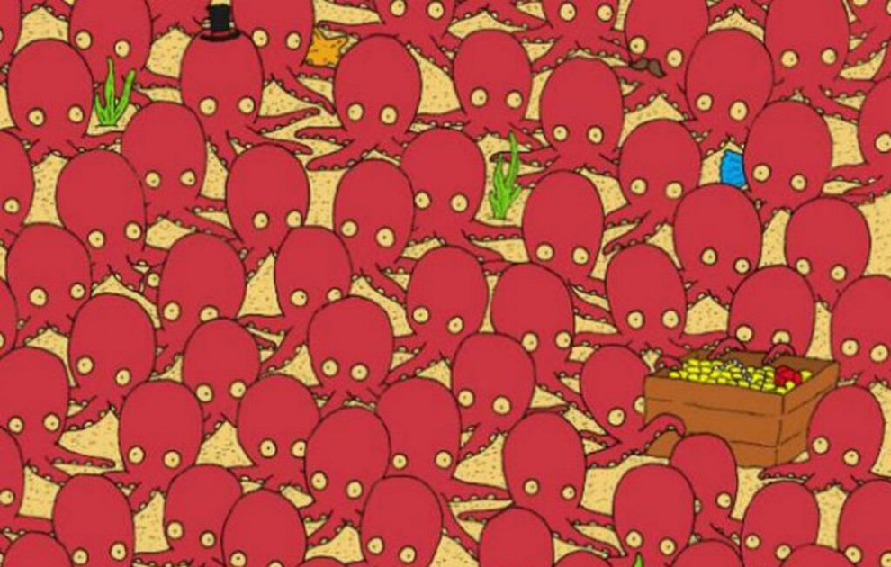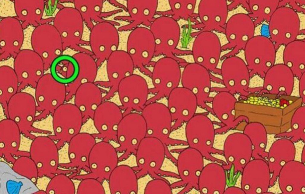 Ένα από τα τεστ παρατηρητικότητας που ενώ αρχικά φαίνεται εύκολο, μπορεί να σε δυσκολέψει. Ανάμεσα στα χταπόδια που βλέπετε υπάρχει ένα ψάρι. Μπορείτε να το εντοπίσετε;