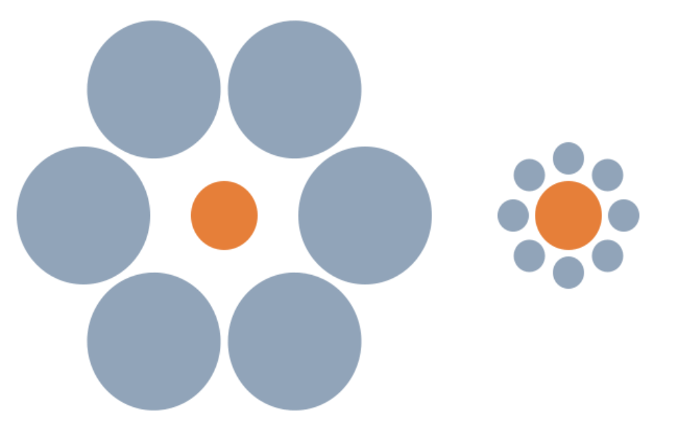 Οι πορτοκαλί κύκλοι δεν έχουν καμία διαφορά και είναι στην πραγματικότητα ίσοι! Πρόκειται για την οφθαλμαπάτη του Έμπινγκχαους η οποία έχει την εξήγησή της, φυσικά. Καθώς οι εξωτερικοί κύκλοι μεγαλώνουν και μικραίνουν, ο κύκλος στο κέντρο φαίνεται να αλλάζει κι αυτός μέγεθος, ενώ στην πραγματικότητα παραμένει ίδιος.