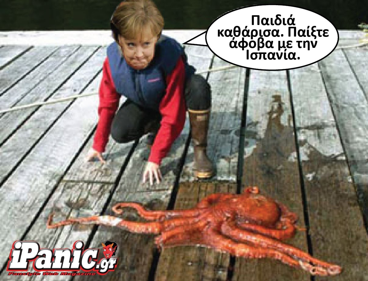 Εμείς σας το είχαμε πει. Από την στιγμή που το χταπόδι έδειξε νίκη της Ισπανίας επί της Γερμανίας στον ημιτελικό του μουντιάλ η Μέρκελ θα το κάνει στα… κάρβουνα.