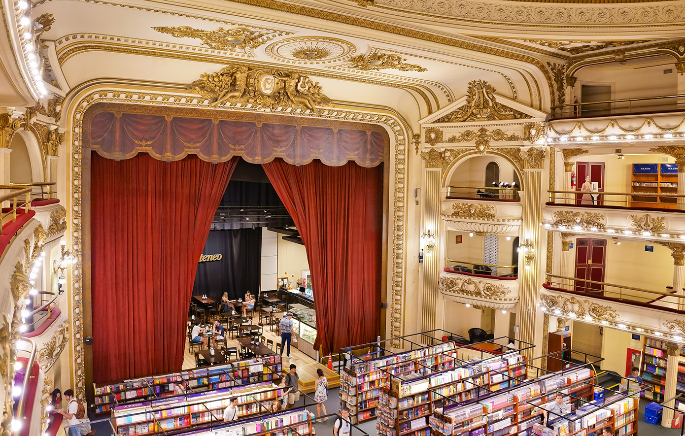 Σε αυτή την κατηγορία ανήκει και ένα βιβλιοπωλείο στην Αργεντινή και συγκεκριμένα στο Μπουένος Άιρες καθώς δεν μοιάζει με κανένα άλλο. Πρόκειται για το βιβλιοπωλείο El Ateneo Grand Splendid το οποίο στεγάζεται σε ένα παλιό θέατρο ηλικίας 100 ετών. Αν μη τι άλλο μόνο και μόνο επίσκεψη εκεί είναι εμπειρία ζωής.