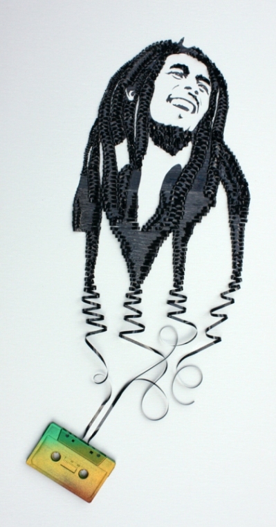 Δεν είναι λίγες φορές που ο θάνατος γίνεται πηγή έμπνευσης. Κι αυτό ακριβώς συνέβη στην περίπτωση της καλλιτέχνιδας Έρικα Σίμονς. Δημιούργησε μία σειρά από έργα που συνδυάζουν μουσικούς θρύλους με διαλυμένες κασέτες (ναι, τα αντικείμενα που προϋπήρχαν των cd). Την ιδιαίτερη αυτή συλλογή την ονόμασε «Ghost in the Machine»