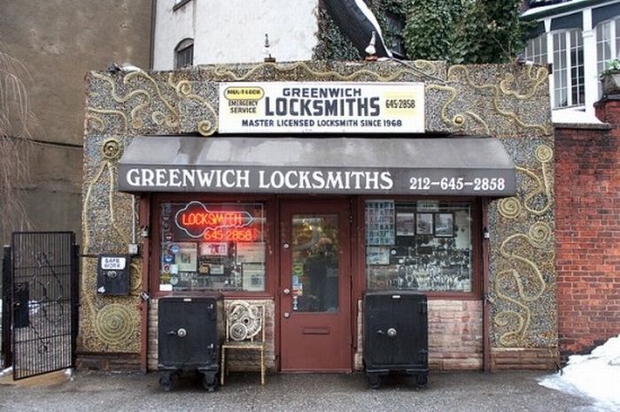 Τα κλειδιά είναι η τέχνη του Greenwich Locksmiths. Και δεν περιορίζονται μόνο στην κατασκευή κλειδιών αφού έφτασαν να κάνουν όλη την πρόσοψη του μαγαζιού να μοιάζει με κομψοτέχνημα. Ή πιο σωστά… κλειδοτέχνημα!