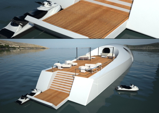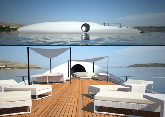 Το concept για ένα νέου τύπου γιοτ παρουσίασαν οι σχεδιαστές Μαρίνα Κολόμπο και Σεμπαστιάνο Βίδα. Η διαφορά αυτού του σκάφους έγκειται στο… αμπάρι του. Το υποθαλάσσιο μέρος του είναι πολύ μεγαλύτερο σε έκταση και δίνει την αίσθηση ότι ο επιβάτης είναι σε υποβρύχιο. Ένα πολύ λουξ, όμως, υποβρύχιο.