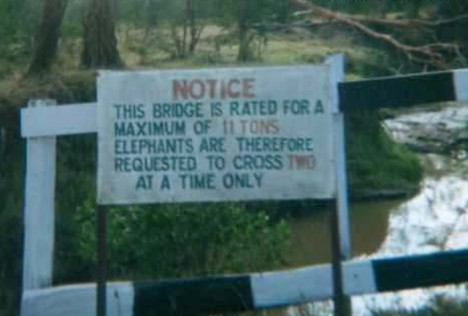 Και μία μετάφραση: «Η γέφυρα αντέχει 11 τόνους. Γι αυτό οι ελέφαντες παρακαλούνται να περνάνε ανά δύο κάθε φορά»