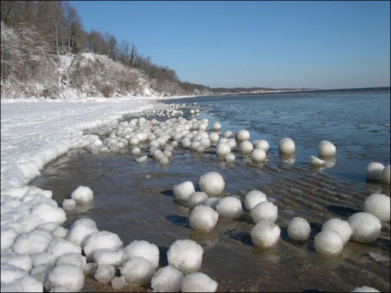 Γνωρίζουμε ότι οι χιονόμπαλες δημιουργούνται από ανθρώπινο χέρι. Αυτή η περίπτωση όμως διαφέρει. Δημιουργήθηκαν χωρίς ανθρώπινη παρέμβαση. Την δουλειά την έκαναν η κίνηση των υδάτων και η θερμοκρασία.