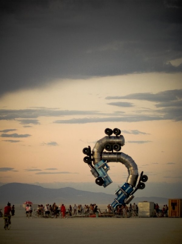 Αυτό κι είναι τρελό γλυπτό. Είναι δημιούργημα του αρχιτέκτονα Μάικ Ρος. Ο τύπος πήρε δύο φορτηγά και αφού κατάφερε να βρει τον τρόπο ώστε να αψηφίσει την βαρύτητα έκανε ένα από τα πιο περίεργα έργα τέχνης. Το ονόμασε «Βig rig jig» και το εξέθεσε στην μέση της… ερήμου Νεβάδα!
