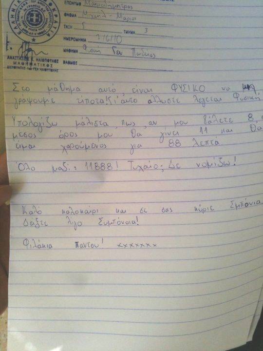 Η ευρηματικότητα των μαθητών πολλές φορές σε εκπλήσσει σε βαθμό που να μην ξέρεις πώς να αντιδράσεις! Άραγε πώς να βαθμολόγησε το συγκεκριμένο γραπτό ο καθηγητής;…