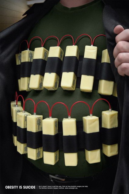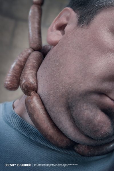 Κατά καιρούς έχουν γίνει διάφορες καμπάνιες κατά της παχυσαρκίας. Προκειμένου να αφυπνίσουν τον κόσμο χρησιμοποίησαν την μέθοδο που συνδυάζει το μαύρο χιούμορ με το σοκ. Οι εικόνες που θα δείτε στην συνέχεια είναι μερικές από τις πλέον πολυσυζητημένες (και κατά συνέπεια πετυχημένες).