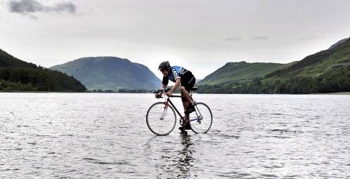 Μια πρωτότυπη φιλανθρωπική κίνηση έκανε ο νεαρός Mett, ο οποίος αποφάσισε να διασχίσει τη λίμνη District με… ποδήλατο. Στόχος του 16χρονου ήταν να μαζέψει χρήματα για να βοηθήσει 209 πληγέντες από τις πλημμύρες της περιοχής, στο στο Βορειοδυτικό άκρο της Αγγλίας.