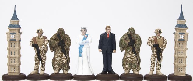 Στη βρετανική έκδοση βασιλιάς θεωρείται ο James Cameron ενώ βασίλισσα είναι η ίδια η Ελισάβετ. Ως πύργοι έχουν τοποθετηθεί δύο μινιατούρες του Μπιγκ Μπεν.