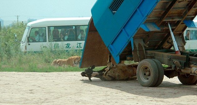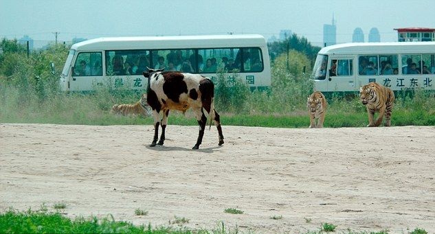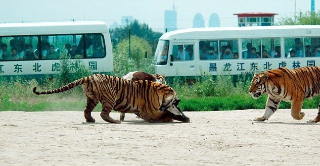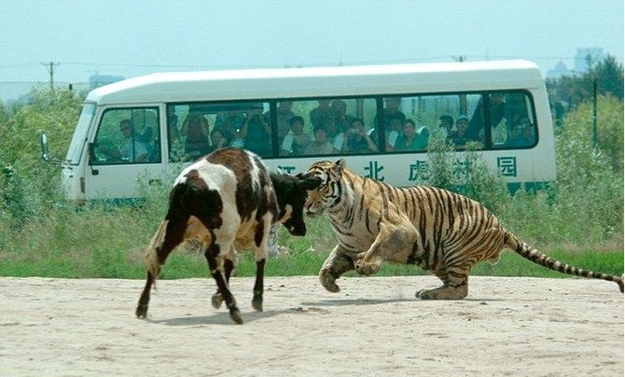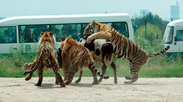 «Κάναμε tour στο πάρκο. Πηγαίναμε να δούμε τα λιοντάρια και τις τίγρεις που τα περισσότερα κοιμοντουσαν κάτω από τις σκιές των δέντρων. Είκοσι λεπτά αργότερα τα πούλμαν σχημάτισαν ένα κύκλο και ήρθαν μαζί μας υπάλληλοι του πάρκου. Δεν υπάρχει αμφιβολία, αυτό που θα ακολουθούσε το περίμεναν σαν να ήταν event. Πέντε τίγρεις εμφανίστηκαν ξαφνικά. Από φορτηγά πετάχτηκαν ζωντανά κοτόπουλα, αγελάδες και άλλα ζώα. Τι συνέβη μετά; Ήταν πολύ τρομακτικό…»