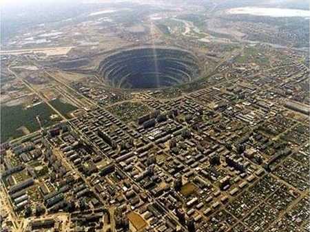 Mirny Diamond Mine, Σιβηρία. Έχεις βάθος 525 μέτρα και διάμετρο 1.200 μέτρα.