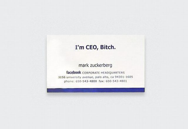 Ο,ΤΙ ΝΑ 'ΝΑΙ #περίεργα «Γεια σας, είμαι ο Μαρκ Ζούκερμπεργκ. Πάρτε και μια κάρτα μου» Επαγγελματικές κάρτες διάσημων προσωπικοτήτων του σήμερα 08·09·2011 17:09 2 σχόλια