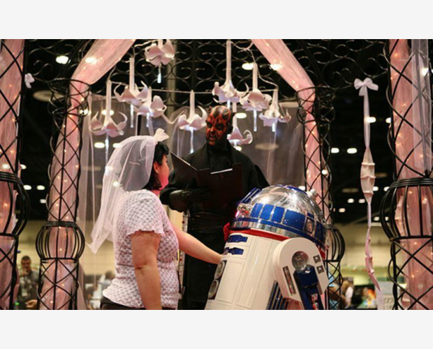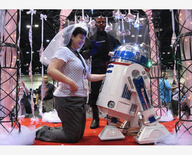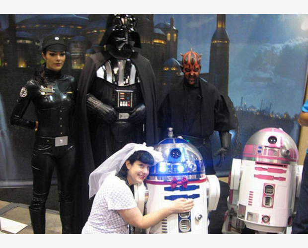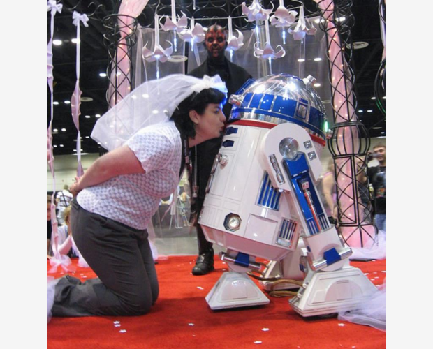 Αυτός ο γάμος δεν έχει προηγούμενο. Μία γυναίκα έκρινε πώς «άντρας» της ζωής της είναι τελικά το ρομποτάκι του Star Wars, R2D2. Έτσι, φρόντισε να το πάρει με παπά τον Darth Maul και κουμπάρο τον… Darth Vader.